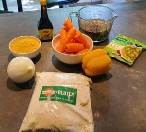 *This recipe makes a pretty soft seitan, if you would like a firmer texture, you can add up to 250 grams more gluten flour.