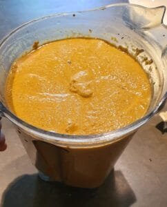 Start by tossing everything except the gluten flour into a high-speed blender — think Vitamix or something with serious muscle. Add 250–300g of water and blend for a few minutes until you’ve got a silky-smooth purée. No gritty seeds allowed — we want velvety.