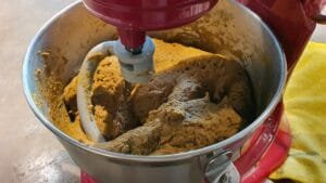 You’re looking for that magical moment when the dough starts pulling together and those gluten strands start flexing. If it’s a little sticky, no worries. If it’s really sticky, toss in a bit more gluten flour and let it mix a bit longer.