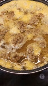 Fill a stock pot with enough broth to fully cover your seitan chunks. Knorr veggie stock is a solid go-to, but feel free to jazz it up with herbs, spices, or your favorite bouillon.